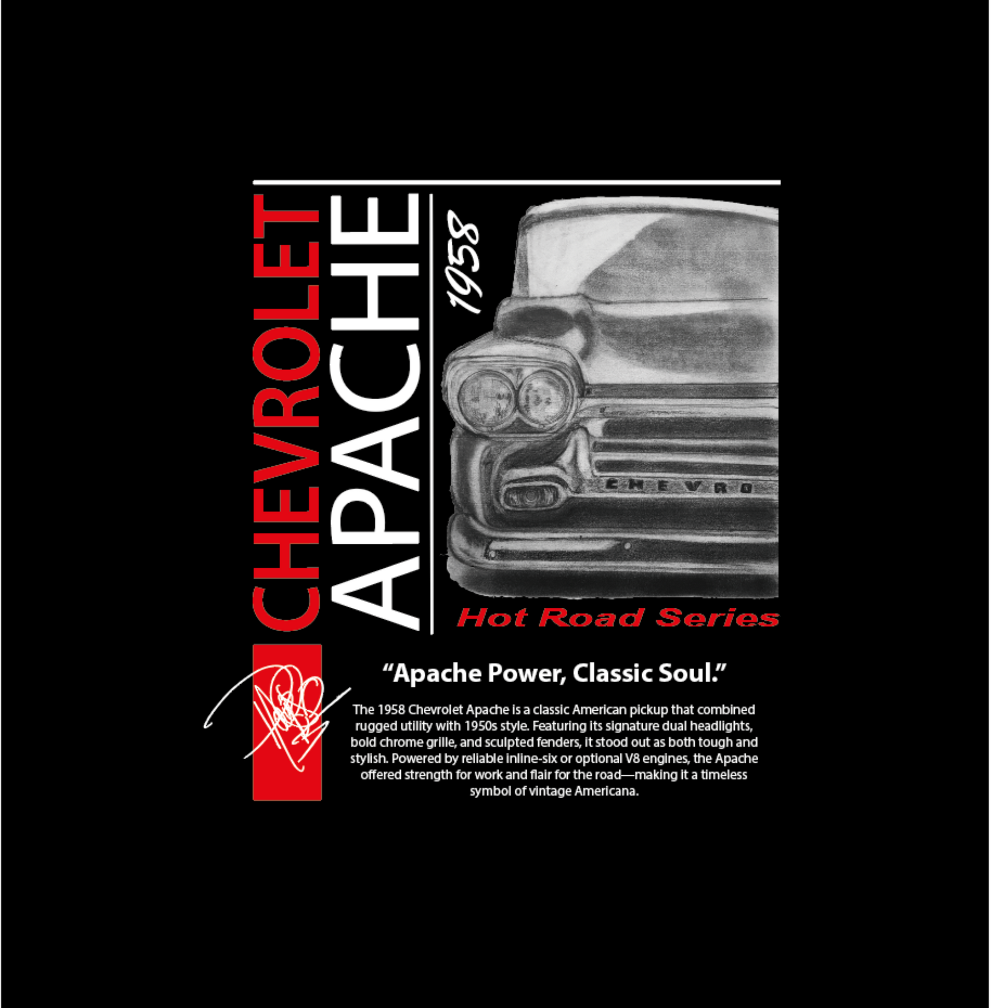 Hand Drawing Chevrolet Apache 1958 Tee — Vintage Truck Graphic T-Shirt